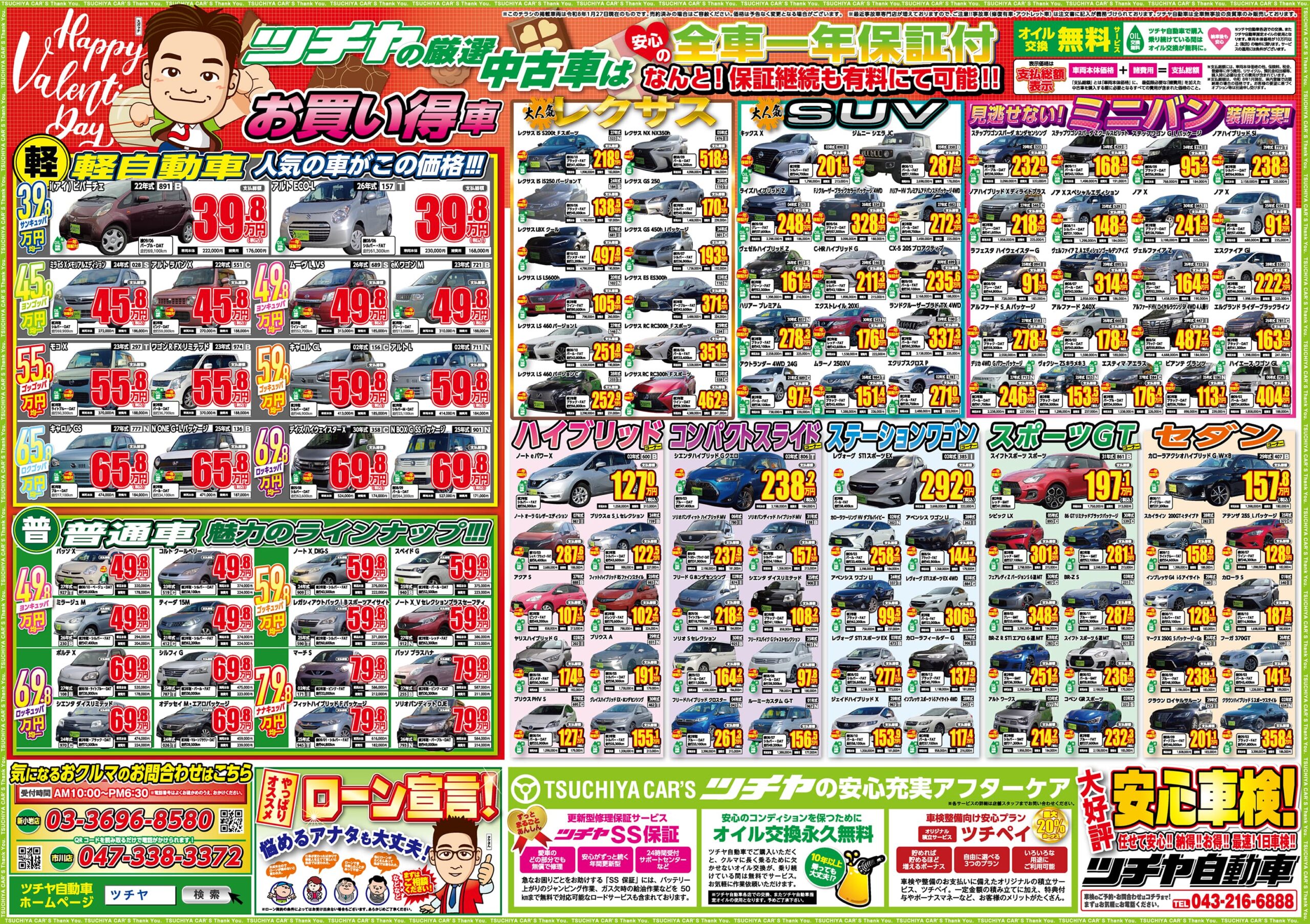 届出済・登録済 未使用車が目白押しのバレンタインフェアセールを1月31日(土)10時より全店舗にて開催いたします。